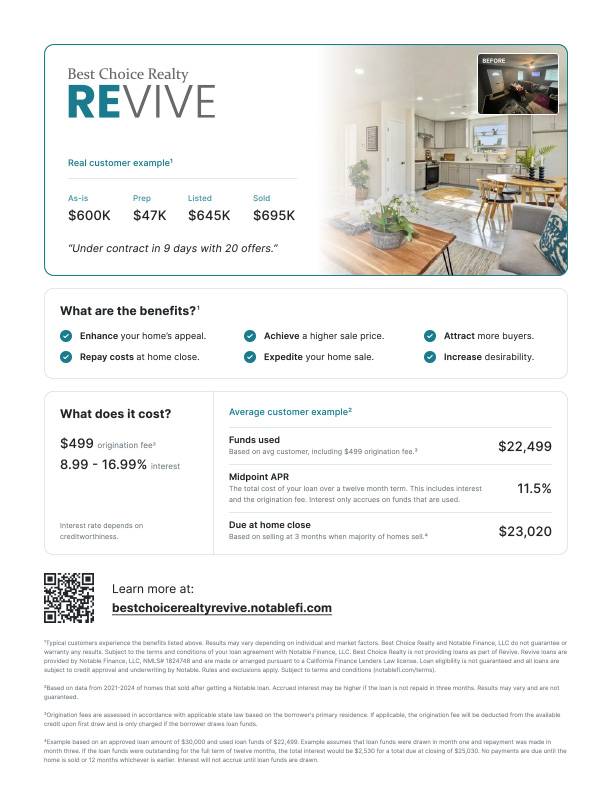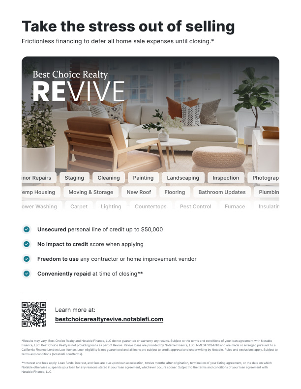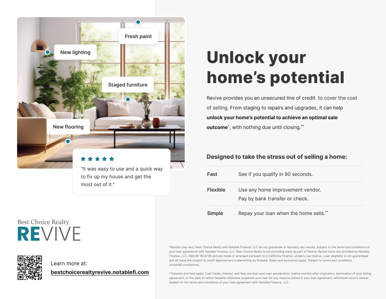 The Revive Home Equity Program is designed to help homeowners unlock their home’s potential by accessing equity before selling. Instead of struggling to cover upfront costs for repairs, updates, or staging, Revive provides the funding needed to make strategic improvements that boost your home’s market value. This allows sellers to present their property in the best possible light without dipping into savings or taking out loans.